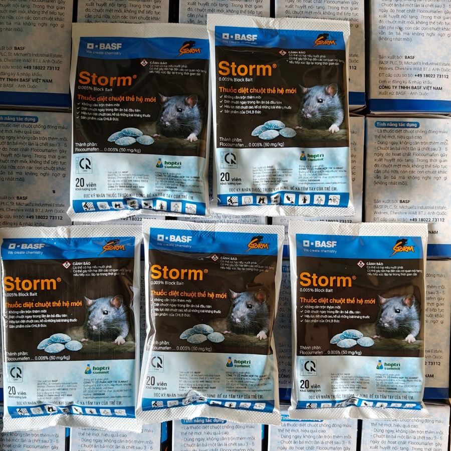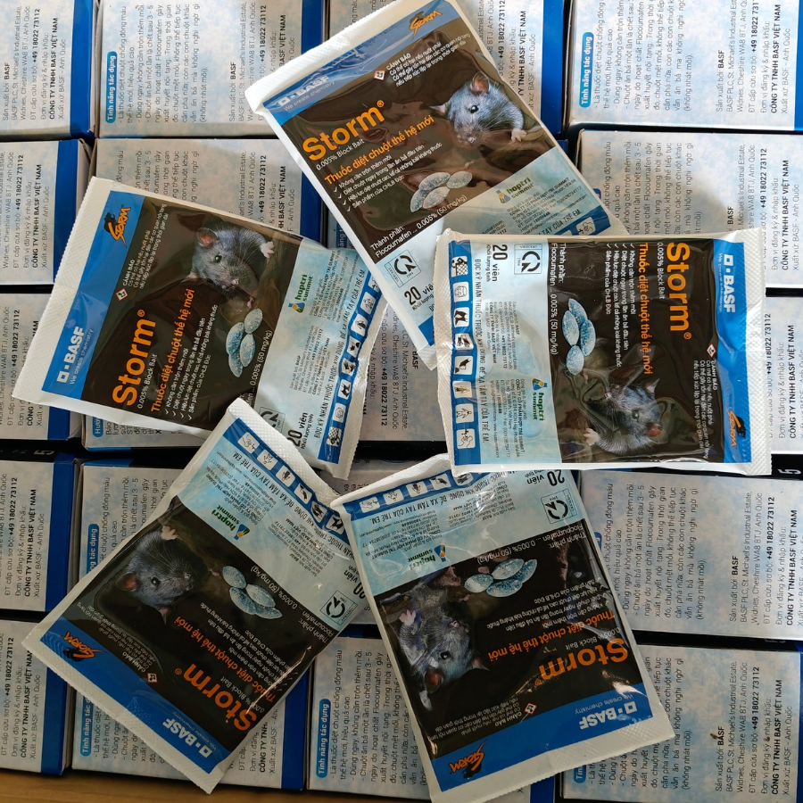 Thuốc diệt chuột Storm là giải pháp kiểm soát chuột hiệu quả, an toàn và được sử dụng rộng rãi trên toàn thế giới. Với hoạt chất mạnh, cơ chế tác động thông minh và dạng viên sáp tiện lợi, Storm giúp tiêu diệt chuột nhanh chóng, hạn chế tái phát và bảo vệ môi trường sống cũng như sản xuất.